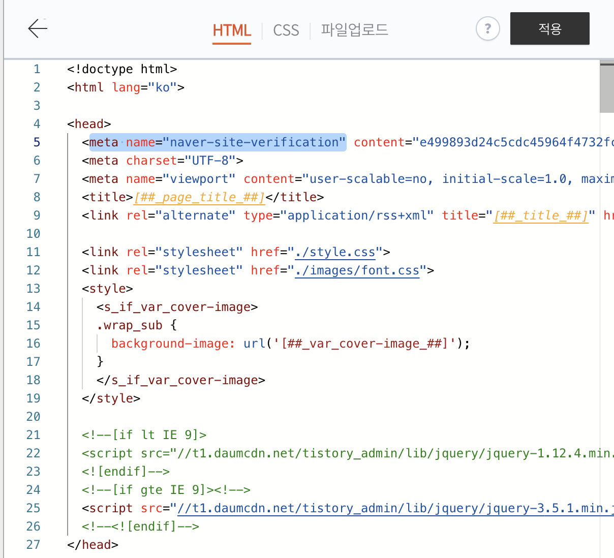 4-2. <head> 바로 아랫줄에 붙여넣기