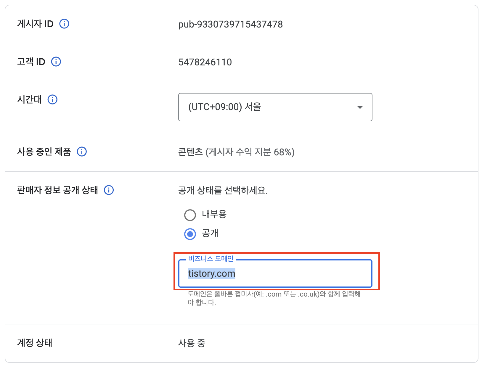 3. 비즈니스 도메인에 'tistory.com' 입력