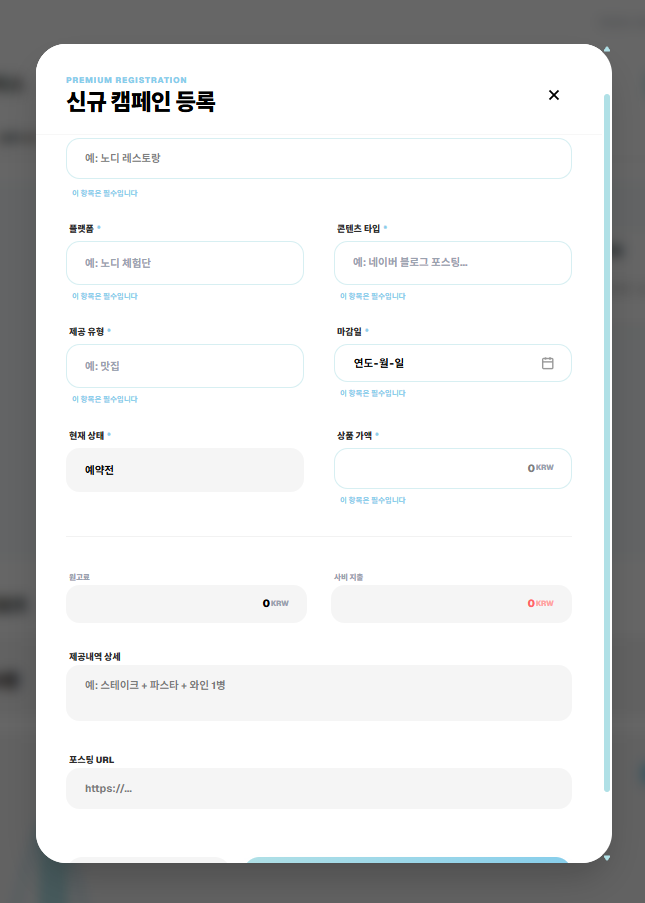 모달이 처음 만들어졌을 때부터 캡쳐 해 둘걸. 꽤 여러차레 손 본 상태고, 지금은 여기서 좀 더 발전된 형태다. 하나 적용하면 하나가 보이고, 또 하나 적용하면 하나가 거슬려서 계속 "아맞다"를 외쳤다.